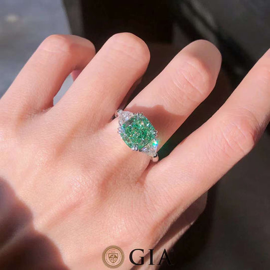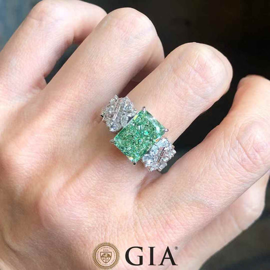 GIA Certified Mixed Cut Pear Green Diamond Ring
