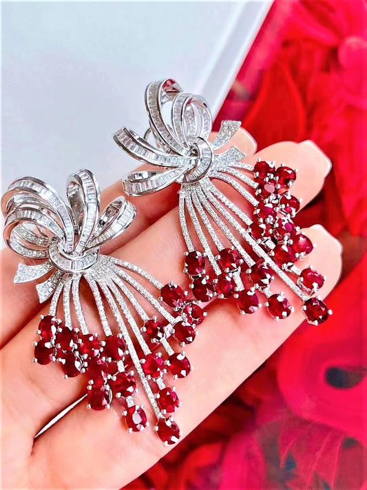 Boucles d'oreilles diamant rubis en or blanc 18 carats