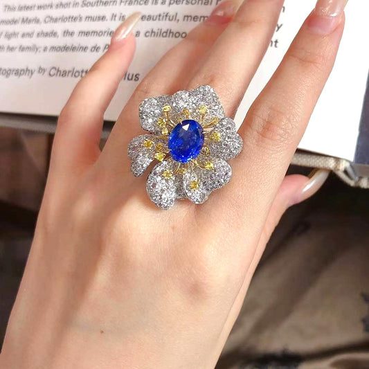 Bague Fleur Saphir Bleu