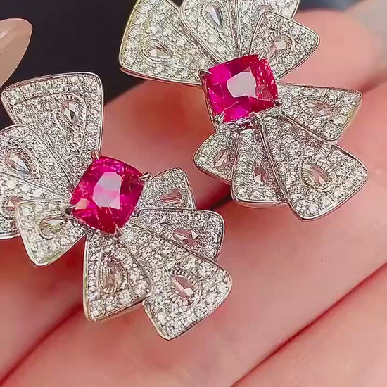 Though the photos can't fully capture the beauty of these earrings, their vibrant ruby color and sparkling diamonds make them a luxury statement that’s perfect for those seeking an extraordinary piece of jewelry. These earrings radiate both refinement and timeless beauty.