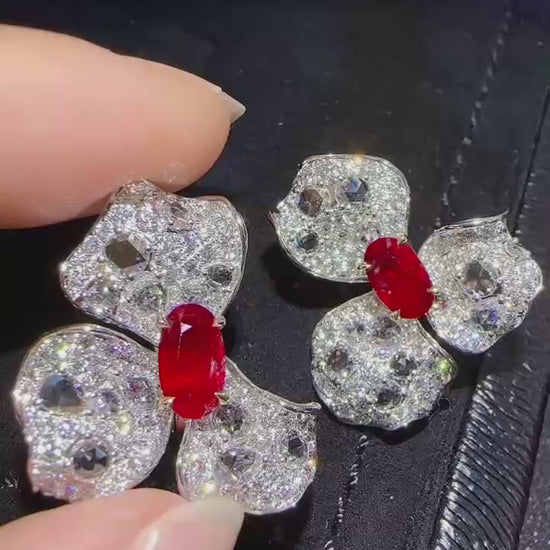 Luxurious Pigeon Blood Red Ruby Flower Stud Earrings in 18K Gold